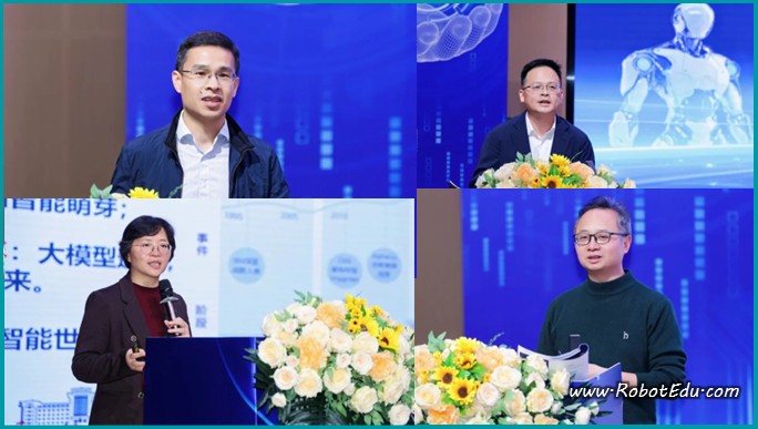 10月30日上午,活动在一场别开生面的人工智能场景表演中拉开帷幕,浙江省教育技术中心副主任胡小杰在致辞时指出,浙江省通过课题引领、顶层设计、“四个先行”来统筹推进人工智能+教育行动。杭州市拱墅区副区长王一平在分享区域经验时表示,人工智能作为变革人才培养模式、创新教育教学方式和提升教育治理能力的全新手段,正为加快发展新质生产力,推动教育高质量发展提供关键支撑。浙江大学教育学院课程与学习科学系主任、教授、博士生导师李艳聚焦“智能时代中小学教师面临的机遇与挑战” 。浙大城市学院教授潘树文提出了区域协同发展的行动,通过持续迭代政策、技术、模式,形成可复制、可推广的长三角方案。